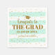 Célébrez votre Graduate avec ces serviettes festives avec un arrière - plan rayé vert et blanc à la menthe amusant et tendance et votre texte personnalisé, accentué par des confettis de glitterie faux or et un casquette doré. Parfait pour une fête de fin d'études secondaires ou collégiales.