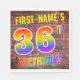L'avant de ce design passionnant, accrocheur et amusant sur le thème de l'anniversaire de la serviette en papier comporte un nom personnalisable, et le message "36E ANNIVERSAIRE !" avec des lettres ayant un motif multicolore inspiré du spectre arc-en-ciel, sur un arrière - plan motif inspiré par un mur de briques. Le style s'inspire de celui du street art ou graffiti dessiné sur un mur. Des serviettes en papier amusantes comme celle-ci pourraient être utilisées lors d’une fête d’anniversaire pour célébrer le 36e anniversaire de quelqu’un. [~Z0000367]