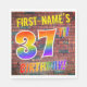L'avant de ce design passionnant, accrocheur et amusant sur le thème de l'anniversaire de la serviette en papier comporte un nom personnalisé, et le message "37E ANNIVERSAIRE !" avec des lettres ayant un motif multicolore inspiré du spectre arc-en-ciel, sur un arrière - plan motif inspiré de murs de briques. L'aspect est inspiré de celui des graffitis ou de l'art de rue dessinés sur un mur. Des serviettes en papier amusantes comme celle-ci pourraient être utilisées lors d'une fête d'anniversaire pour honorer quelqu'un qui célèbre son trente-septième anniversaire. [~Z0000367]