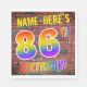 La façade de ce design passionnant, vibrant et attrayant d'anniversaire de conception de serviette en papier avec un nom personnalisable, et le message "86E ANNIVERSAIRE !" avec des lettres ayant un motif multicolore inspiré du spectre arc-en-ciel, sur un arrière - plan motif inspiré par un mur de briques. L'aspect s'inspire de celui des graffitis ou de l'art de rue dessinés sur un mur. Des serviettes en papier amusantes comme celle-ci pourraient être utilisées à une fête d'anniversaire pour quelqu'un qui célèbre son 86e anniversaire. [~Z0000367]