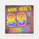 La façade de cette serviette en papier captivante, amusante et passionnante sur le thème de l'anniversaire comporte un nom personnalisé, et le message "89E ANNIVERSAIRE !" avec des lettres ayant un motif multicolore inspiré du spectre arc-en-ciel, sur un arrière - plan motif inspiré par un mur de briques. L'aspect s'inspire de celui des graffitis ou de l'art de rue dessinés sur un mur. Des serviettes en papier amusantes comme celle-ci pourraient être utilisées lors d’une fête d’anniversaire pour commémorer le 89e anniversaire de quelqu’un. [~Z0000367]