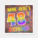La façade de cette serviette en papier attrayante, amusante et vibrante sur le thème de l'anniversaire est dotée d'un nom personnalisé, et le message "48E ANNIVERSAIRE !" avec des lettres ayant un motif dégradé multicolore inspiré par le spectre arc-en-ciel, sur un arrière - plan motif inspiré du mur de briques. Le style s'inspire de celui des graffitis ou de l'art de rue dessinés sur un mur. Des serviettes en papier amusantes comme celle-ci pourraient être utilisées lors d'une fête d'anniversaire pour honorer quelqu'un qui célèbre son 48e anniversaire. [~Z0000367]