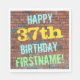 Cette conception amusante de serviette en papier sur le thème de l'anniversaire comporte un message comme "HAPPY 37th BIRTHDAY, FIRSTNAME!", où le nom peut être personnalisé. L'arrière - plan est représenté par un mur en brique composé de briques de couleur rougeâtre. Le texte du message personnalisable comporte des couleurs comme le bleu, le jaune et le vert, et il a un aspect inspiré de celui des graffitis peints. Des serviettes comme celles-ci pourraient être utilisées à une fête d'anniversaire pour quelqu'un qui célèbre son trente-septième anniversaire. [~Z0000271]