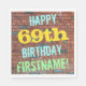 Cette conception amusante de serviette en papier sur le thème de l'anniversaire comporte un message comme "HAPPY 69th BIRTHDAY, FIRSTNAME!", où le nom peut être personnalisé. L'arrière - plan est représenté par un mur en brique composé de briques de couleur rougeâtre. Le texte du message personnalisable comporte des couleurs comme le bleu, le jaune et le vert, et il a un aspect inspiré de celui des graffitis peints. Des serviettes comme celles-ci pourraient être utilisées à une fête d'anniversaire pour quelqu'un qui célèbre son soixante-neuvième anniversaire. [~Z0000271]