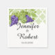 Ce design amusant s'appelle Grapevine Garden Wedding. L'arrière - plan est blanc vif. En haut il y a un motif damassé vert pomme avec une vigne sur le côté gauche avec des raisins violets. Idéal pour un jardin ou un mariage extérieur. Cet ensemble contient des invitations, enregistrer les cartes de date, les cartes de réponse, les cartes de remerciement, les cartes de tente de numéro de table, les scellés d'enveloppe, les étiquettes de vin, les classeurs, les étiquettes d'adresse de retour et beaucoup d'autres pièces de papeterie mariage de jour, les faveurs et les cadeaux disponibles. Utilisez les autocollants de scellés d'enveloppe pour n'importe quel de vos cadeaux do-it-yourself - ceux-ci sont disponibles en grandes et petites tailles! Tous les éléments sont imprimés sur nos produits de haute qualité, ils n'incluent pas d'or, de bijoux, de gaufrage ou d'autres éléments textiles. Tous les dessins sont copyright Noteable Expressions, Inc. Tous droits réservés.