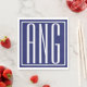 Serviette En Papier Gras moderne 3 initiales Monogramme | bleu marine