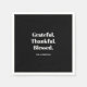 Ajoutez une touche d'élégance moderne et de gratitude à votre table de vacances avec ces noires "Grateful. Merci. Béni." serviettes. Avec une typographie blanche et audacieuse sur un arrière - plan noir élégant, ils sont le parfait mélange de chic et de sens pour Thanksgiving, Friendsgiving, ou toute fête d'automne. Idéal pour les dîners de Thanksgiving, mariages de automne, cocktails et réunions de famille. Disponible avec ou sans personnalisation — ajoutez votre nom de famille ou laissez-le comme un design universel prêt à accueillir. Le design minimaliste s'associe harmonieusement aux tables modernes, rustiques ou élégantes. Faites de votre célébration mémorable avec des serviettes qui rappellent à tout le monde ce qui compte vraiment — la gratitude, la famille et les bénédictions.