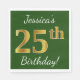 Serviette En Papier Green, Faux Gold 25e anniversaire + Nom personnali