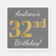 Ce design simple de serviette en papier comporte un message comme "32e anniversaire d’Andrew!", avec le "32e" ayant une apparence fausse/imitation or, sur un arrière - plan gris (gris). Le nom peut être customisé. Il pourrait être utilisé à une fête d'anniversaire pour quelqu'un qui célèbre son trente-deuxième anniversaire. [~Z0000190]
