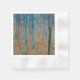 Il s'agit d'oeuvres de Gustav Klimt, Beech Grove 1, 1902. Les oeuvres d'art dépeignent une forêt dense de grands bouleaux, minces, aux troncs pâles marqués par des lignes verticales foncées. Le feuillage est dépeint dans les tons bleu, vert et jaune, ajoutant un sens de profondeur et de vibrations à la scène. Le sol de la forêt est recouvert d'une couche de feuilles orange et marron, créant un contraste saisissant avec les tronçons d'arbres plus légers. La composition globale utilise des techniques pointillistes et impressionnistes, donnant à l'image une apparence vivante et texturée. La verticalité des arbres souligne la structure sereine et rythmique de la forêt.