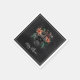 Un design éffrayant et chic d'Halloween, avec une illustration d'un crâne tropical fleuri surmonté de fleurs d'île orange et bordeaux et de feuillage de jungle verte sur un arrière - plan noir fumé. Personnalisez cette serviette en papier Halloween unique et élégante avec du texte personnalisé ; illustré par "Happy Halloween".