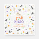 Vous avez un baby shower thématique Halloween ? Voici un design adorable avec "Peek a booo" sur les serviettes de fête ! Maman et fantôme bébé sont entourés de confettis à thème Halloween violet, orange, vert et noir, y compris les chauves-souris, les fantômes, les bottes de sorcière et le maïs bonbon. Facile à éditer pour votre propre baby shower à thème Halloween!