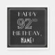 Cette élégante conception de serviette en papier inspirée de l'art déco des années 1920-1930 a le message "HAPPY 92ND BIRTHDAY", ainsi qu'un nom de destinataire personnalisé. Le numéro "92ND" a un aspect géométrique et soigné, et il y a aussi une bordure autour du message de voeux d'anniversaire. De luxueuses serviettes en papier à thème d'anniversaire comme celles-ci pourraient être utilisées à une fête pour quelqu'un qui célèbre son quatre-vingt-douzième anniversaire. [~Z0000645]