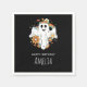 Des serviettes en papier avec l'illustration d'un fantôme souriant. Décoré de fleurs, arcs-en-ciel et chauves-souris.