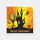 Papier blanc avec arrière - plan hanté de la maison et orange Happy Halloween police.
