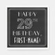 Ce luxueux design de serviette en papier d'inspiration art déco des années 2000 est doté du message "HAPPY 29TH BIRTHDAY", ainsi que d'un nom de destinataire personnalisable. Le numéro "29TH" a un aspect géométrique soigné, et il y a aussi une bordure multi-lignes autour du message de voeux d'anniversaire. Des serviettes en papier comme celles-ci pourraient être utilisées lors d’une fête d’anniversaire organisée pour célébrer le vingt-neuvième anniversaire de quelqu’un. [~Z0000645]