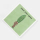 Cette serviette en papier est vert clair avec un homme cool en costume marron et cravate rouge avec un grand pickle vert pour une tête avec un visage surprenant. Customisez votre texte avec le modèle.