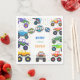 Chéri ! bip ! vroom ! des camions monstres, un objet d'anniversaire pour garçon. Coloré et super mignon. Nom, adresse modifiable.