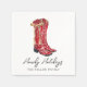 Ces serviettes de fête ont un portrait aquarelle d'une paire de bottes de cowgirl rouges avec la légende "vacances chaudes".