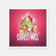 Des serviettes en papier avec une illustration de Noël cool. Le texte dit Joyeux Noël & Bonne Année. Conçu avec un monticule de cadeaux en forme d'arbre avec des flocons de neige festifs, des étoiles, des baubles de noël et des étincelles à l'air brillant. L'arrière - plan est une couleur rose rougeâtre vibrante.