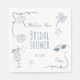 Ces serviettes en papier pour la douche de mariée avec illustrations de plage dessinées à la main présentent un fond blanc propre avec un texte élégant et personnalisable au centre - "Douche de mariée" avec un espace au-dessus pour ajouter le nom de la mariée et en dessous pour inclure la date de l'événement. Autour du texte, on trouve de charmantes illustrations côtières bleues poussiéreuses telles que des vagues, des coquillages, des étoiles de mer, des lunettes de soleil et d'autres accents de plage, tous réunis avec une bordure ondulée et sinueuse ludique dans les coins supérieur gauche et inférieur droit. Chaque élément, des illustrations au texte, est entièrement éditable, vous permettant d'ajuster les couleurs et les détails pour coordonner parfaitement avec le thème de votre douche de mariée.