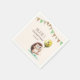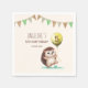 Serviettes d'anniversaire adorables pour enfants avec un mignon hérisson joyeux tenant un ballon avec arrière - plan du drapeau de fête.