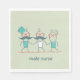 Un dessin d'infirmière masculine avec une illustration de trois infirmières. Ce design semble vraiment efficace sur ces serviettes en papier
