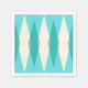Ces serviettes en papier Jacquard moderne du milieu du siècle (en gros caractères) sont ornées d'un arrière - plan turquoise et dynamique et d'un motif de diamants turquoises mod et translucides recouvrant de grands diamants vintages de couleur or et des taches d'âge spatial. Ce Jacquard minimaliste d'inspiration et déconstruit est un retour simpliste de l'ère atomique plus grande que la vie qui a dominé le paysage décoratif des années 1950 et 1960. Ce design kitsch rappelle tout, des panneaux de bowling rétro Palm Springs aux plateaux de télévision que vous utilisiez chez votre grand-mère.