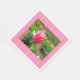 Cette serviette en papier arbore une rose rose trouvée dans le jardin rose de Cantigny à Wheaton, Illinois. Des rayures blanches roses fournissent un cadre.