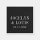 Serviettes mariages modernes avec un design noir minimaliste avec vos noms dans une grande police avec votre date de mariage. Cette conception est assez simple pour un mariage officiel tout en faisant une déclaration audacieuse.