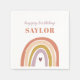Cute Boho Rainbow Peach Blush Birthday Napkins présente un adorable duo d'arc-en-ciel dans les tons rose, bleu, moutarde, aqua et marine, ainsi que la calligraphie moderne.