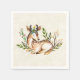 Serviettes en papier avec un joli cerf posé au milieu de la flore feuillue. Style Boho rustique.