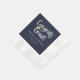 Félicitations Grad ! Écriture blanche joueuse avec accent de casquette de graduation dorée, serviettes de fête de graduation. Caractéristiques, bleu marine arrière - plan couleur.
