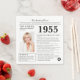 Dites joyeux anniversaire à quelqu'un né en 1955 avec ces uniques serviettes de style journal rétro, y compris une collection de faits amusants et des nouvelles du monde de l'année de leur naissance. Conçu pour ressembler à un journal vintage avec des textes en noir et blanc, il est facilement personnalisé avec une photo de l'invité d'honneur et son nom. Célébrez les années 1950 dans un style unique.