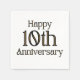 Ces serviettes portent le mot "Happy 10th Anniversary" dans une police d'impression unique avec des lettres d'or noir contour. Styles de serviette couchés ou standard disponibles vendus en quantités de 50 mesures 4,75 po x 4,75 po (pliés) imprimés en couleur.
