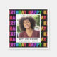 Célébrez son 30e anniversaire avec style avec ces serviettes colorées de fête, avec les mots "Joyeux anniversaire" en lettres rétro couleur arc-en-ciel sur un arrière - plan noir. Personnalisez-les avec une photo préférée, avec le nom de l'invité d'honneur et la date.