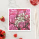 Ces serviettes d'anniversaire joyeuses comportent un bouquet de roses roses avec le souffle du bébé.