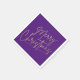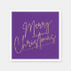 Joyeux texte de Noël en lettres fantaisie chic en fausse feuille d'or est présenté sur les serviettes en papier de vacances violet. Plaques en papier et plus dans notre magasin.