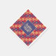 Une calligraphie sophistiquée coule la police en beige contre un arrière - plan bleu bordé de blocs carrés en rouge, moutarde et bleu. La police dit "Joyeux Noel" qui est français pour Joyeux Noël et les blocs sont remplis d'illustrations d'arbres de Noël; cadeaux emballés; Père Noël et anges. Idéal pour toutes les décorations de table de saison festives.