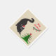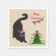 serviettes de Noël avec chat noir, arbre de vacances, fleur Poinsettia. Ajoutez du texte personnalisé et une couleur arrière - plan.