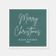 Serviettes de vacances hivernales avec le texte "Joyeux Noël" dans un script de style manuscrit avec votre nom ou autre texte personnalisé ci-dessous. Texte blanc sur arrière - plan vert pin.
