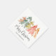 Serviettes élégantes pour votre décor de table de Noël avec une aquarelle abstraite de pins dans vert sauge muet, rouge, or et terre cuite, "Joyeux Noël" dans un script élégant et votre nom dans une typographie moderne simple.