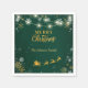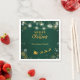 Serviettes élégantes de fête de Noël de Noël de Noël avec flocons d'or et blanc, lampes à cordes et Père Noël sur son traîneau. Idéal pour les fêtes de fin d'année. Déposez votre propre nom de famille ou celui d'une autre personne ou supprimez le texte si vous voulez une conception plus simple. Correspondance d'éléments dans mon magasin UnuqieDesigns.