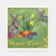 Scène de printemps avec #EasterBunnies et #EasterEggs sur un pré vert avec des fleurs, texte #HappyEaster 👉 Correspondances de plaques de papier, tasses, et d'autres objets avec ce design disponible.