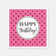Joyeuses serviettes d'anniversaire pour la fête d'anniversaire en motif pois rose chaud et blanc et noir.