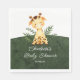 Un baby shower safari en couleur d'eau douce avec une Giraffe aux feuilles de jungle sur un arrière - plan vert foncé. Parfait pour un baby shower pour filles, un baby shower pour garçons ou un baby shower neutre. Visitez notre boutique pour voir ce design avec des animaux individuels