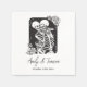 Skeletons de baiser à thème gothique noir et blanc Halloween Serviettes personnalisées pour Fiançailles Mariage Anniversaire Fête | Il présente des squelettes, des fleurs et du texte personnalisé.
