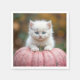 Un chaton blanc et moelleux aux yeux bleus frappants trône adorablement sur un citrouille rose