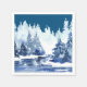 Serviettes de la forêt d'hiver. Image d'arbres recouverts de neige près d'une rivière la nuit.