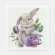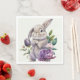 Une Belle Napkine En Papier Conçue Avec Un Lapin Bébé Avec Des Fleurs De Peonies Violettes Et Roses